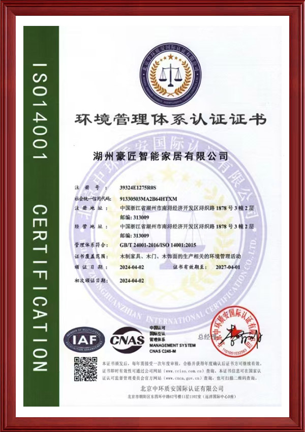 豪匠智能家居一直以来秉承“原木材料,绿色家居”家居理念,将对环境的保护融入产品研发生产的始终,让万千消费者切实感受到绿色家居的福利。